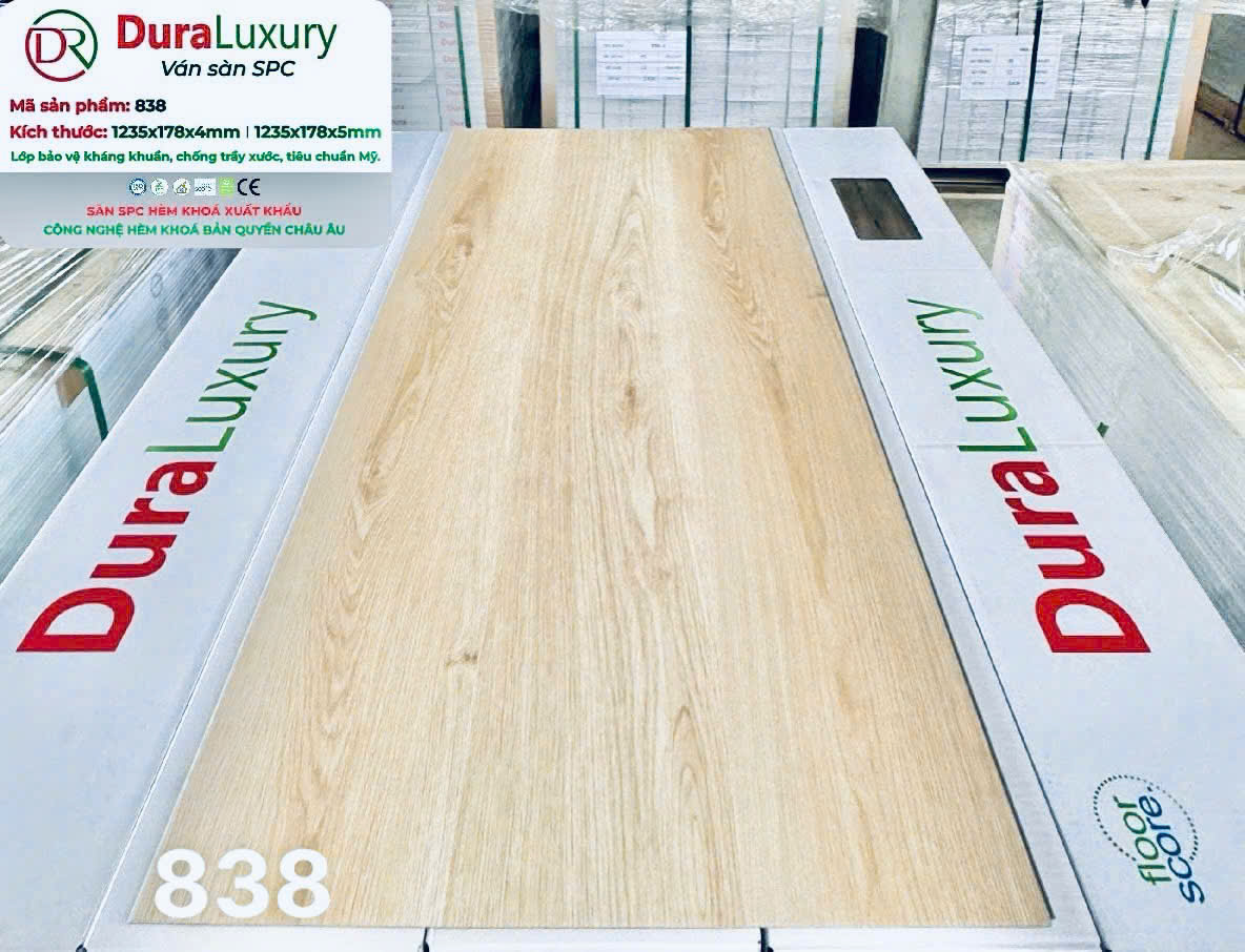 Sàn nhựa hèm khóa 838 được sản xuất theo kích thước 1220x180x5mm